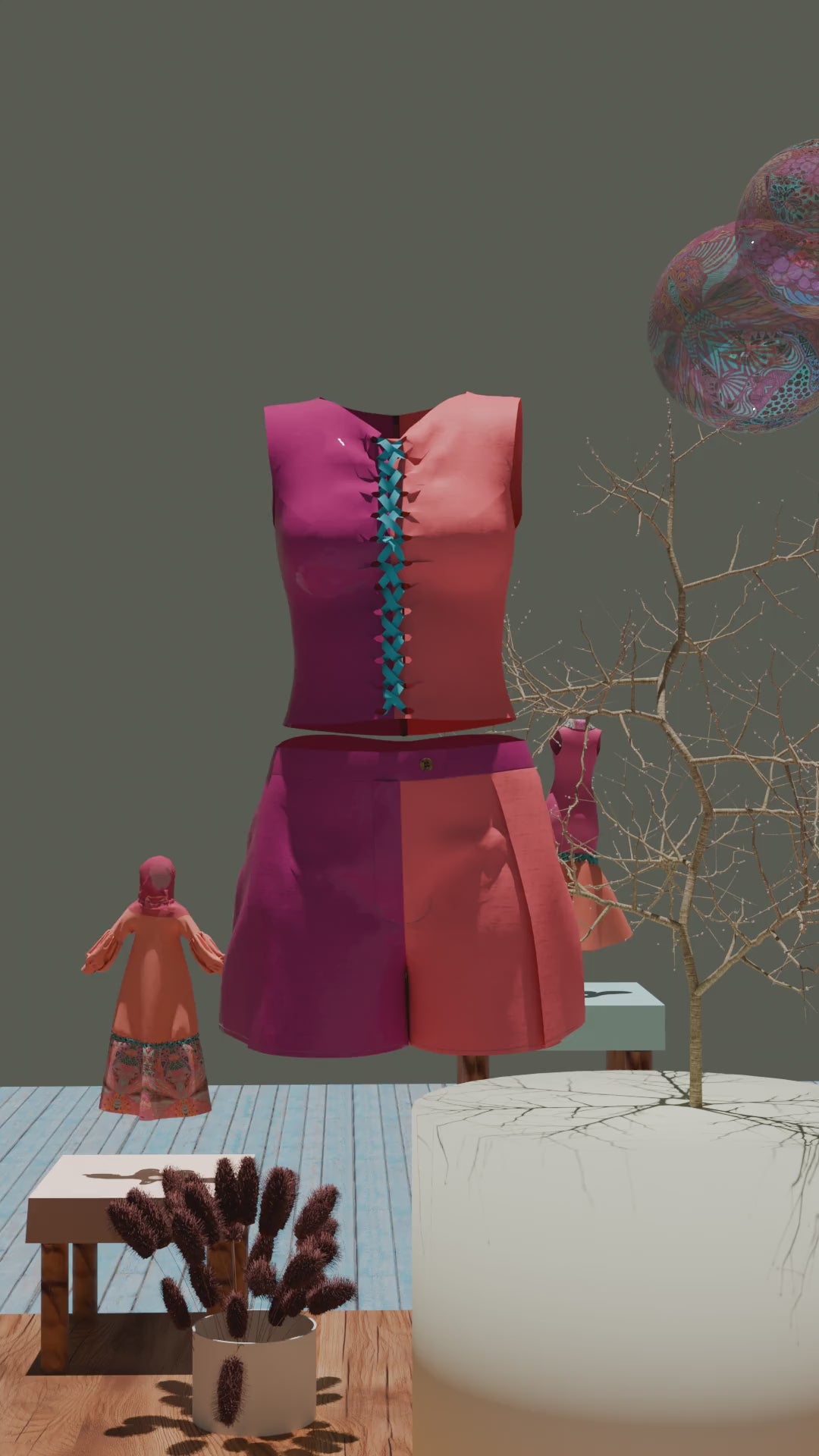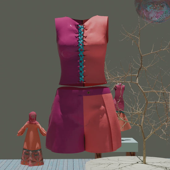 This two piece is made of shorts and a sleeveless top with with lace up closing, and colour blocked. Made of 100% Linen and suitable for vacation, brunches, and beach days.